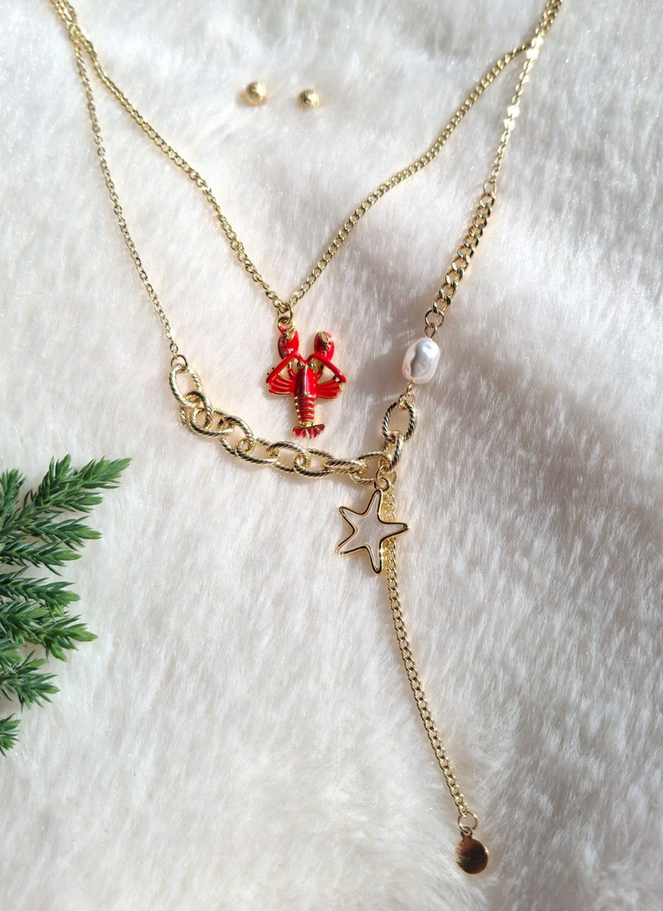 Hermoso collar en rodio con dijes marinos que evocan la calma y la belleza del océano. Un accesorio delicado que conecta con la frescura y la feminidad natural.