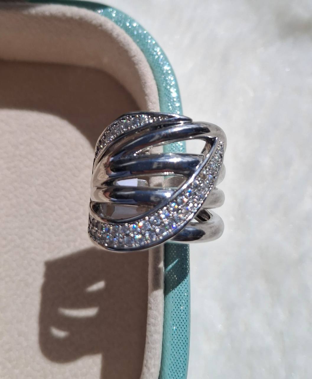 Maxi anillo con detalles de piedras, color dorado y plateado.