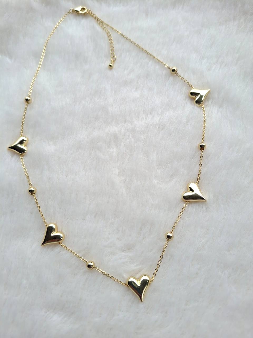 Hermoso collar en rodio con dijes de corazón, ideal para aportar personalidad y elegancia a tu estilo diario.